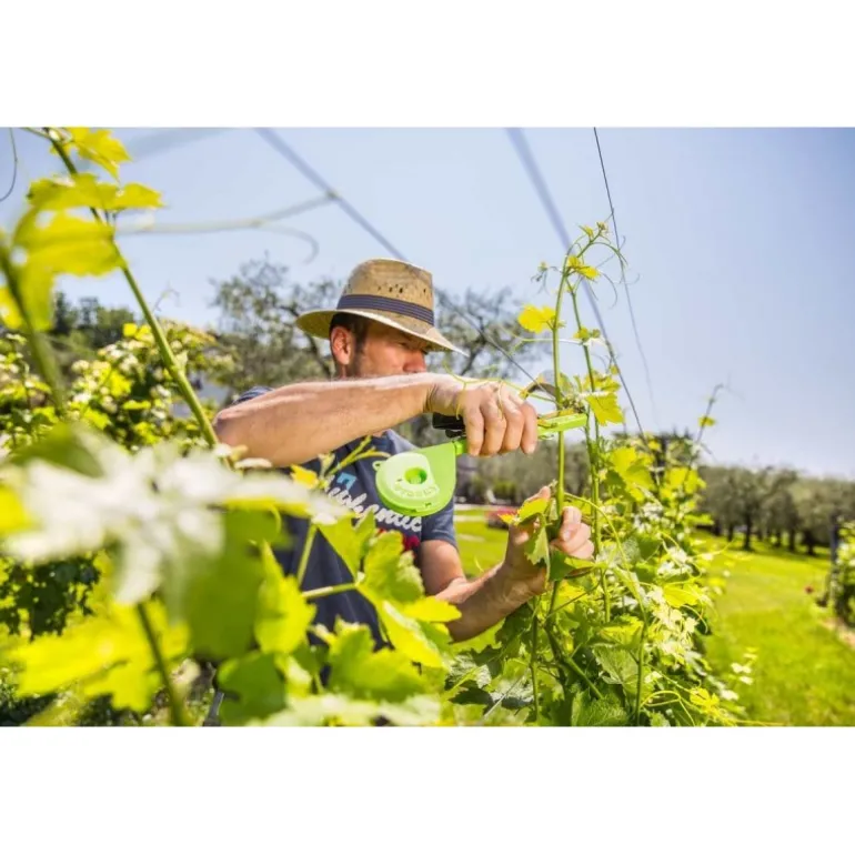 Legatrice di massima efficienza per lavori di legatura su qualsiasi tipo di pianta: viti, pomodori, orto e giardino, ecc. Utilizzabile con nastri di diversi spessori. Impiego: – agganciare il nastro con una leggera pressione della mano – spingere la legatrice contro il tralcio ed il tutore da legare – premere la legatrice con la mano in modo deciso, fino ad ottenere la graffatura ed il taglio del nastro