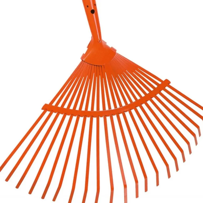 Rastrello per fogliame per raccogliere foglie, erba tagliata e altri detriti. I denti flessibili danno maneggevolezza all’attrezzo per un lavoro efficace e veloce. – 22 denti – Struttura in metallo verniciato lucido con smalto arancione altamente resistente – Da utilizzare con manico venduto separatamente Lunghezza: 38 cm Apertura a ventaglio: da 57 cm