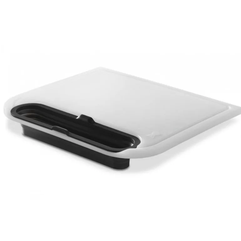 Con il tagliere Cut & Catch per Weber Traveler, tagliare la carne e affettare verdure nelle tue gite fuori porta sarà semplicissimo grazie alla pratica vaschetta di raccolta integrata.