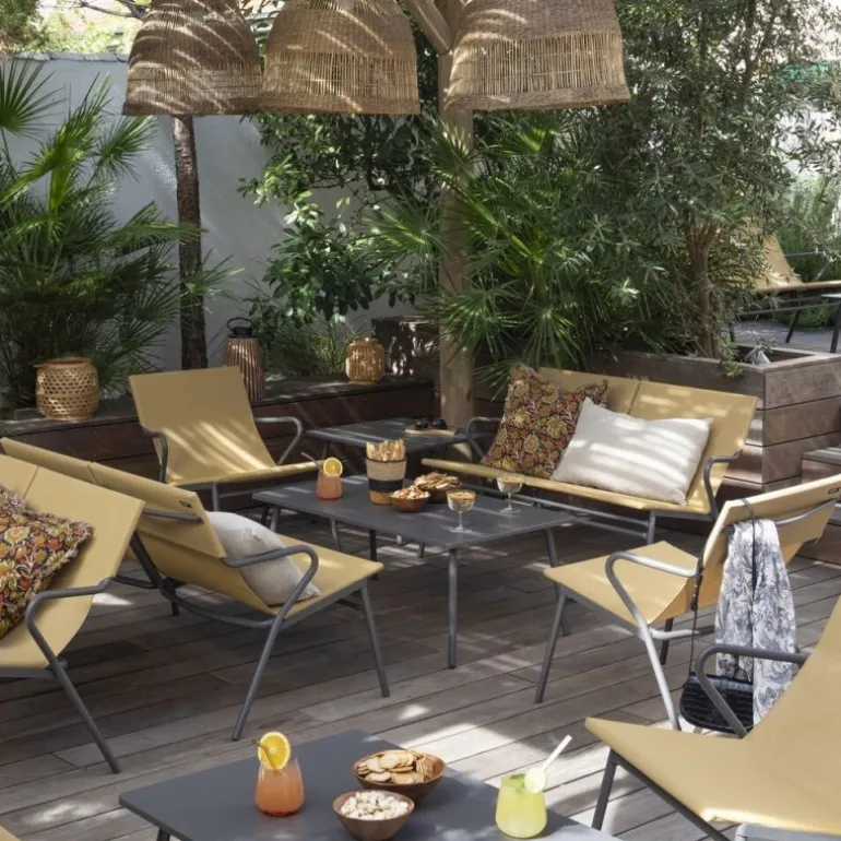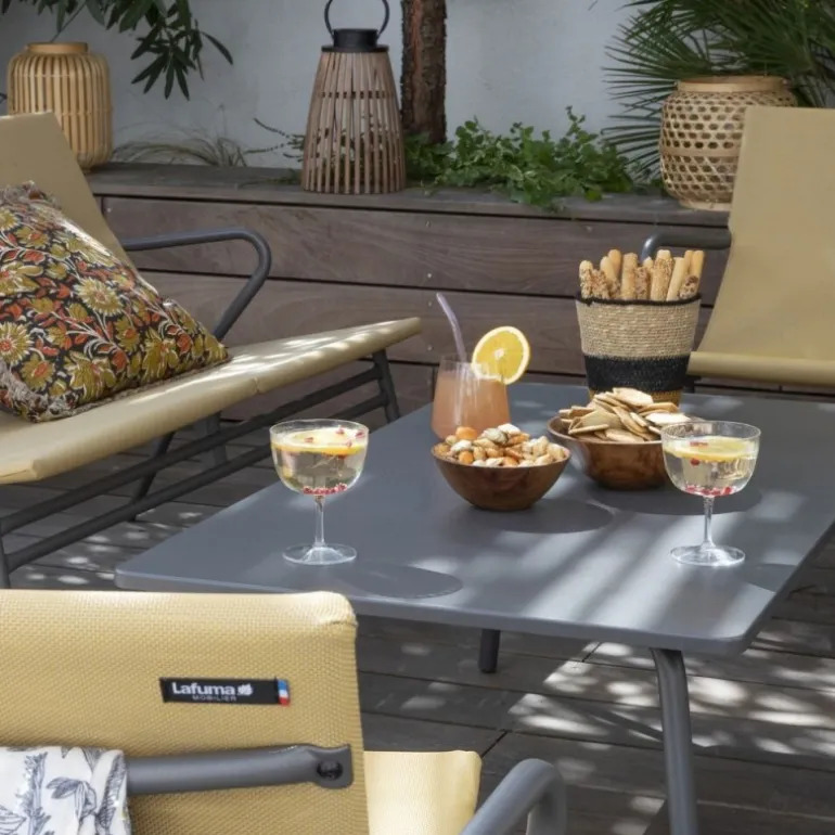 VENCE, la linea lounge di LaFuma per arredare secondo i tuoi desideri di stile. Una poltrona bassa, un divanetto per due persone che si combinano con un tavolo quadrato o rettangolare… molteplici possibilità per creare un piacevole spazio di vita all’aperto. Componete il vostro salotto da giardino ideale, accogliente e funzionale che si adatta a tutti i vostri modi di vivere.